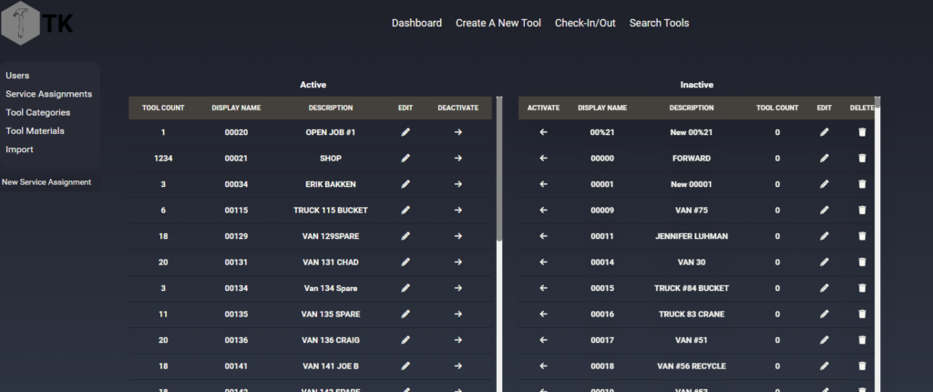 The service assignments settings page has been reworked to two columns, active and inactive. I don’t have any screenshots but previously it was one large table, with pagination buttons (next, last, numbers) at the bottom. As the active list is pretty short comparatively, but the inactive SAs need to remain for Tool Histories to have reference points, this allows us to keep both without forcing users to dig through 700 inactive items to find the one they need.